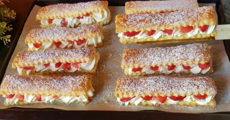 Hledáte recept na rychlý a chutný dezert ke kávě? Tak vyzkoušejte tyhle jahodové řezy z listového těsta. Jejich příprava je velmi jednoduchá. Kombinace jahod a křehkého listového těsta vytváří dokonalou harmonii chutí. Mascarpone krém dodává tomuto dezertu bohatou chuť.