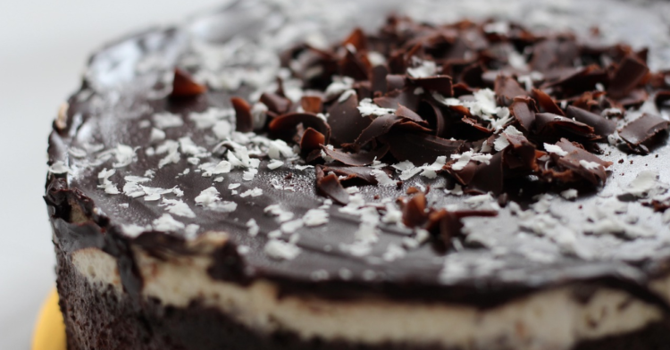 - Ještě teplou ji rozetřeme na vychladlý korpus a uhladíme. Rozpustíme čokoládu s máslem. Vzniklou polevu nalijeme na kokosovou vrstvu a rozetřeme. Necháme ztuhnout v lednici alespoň 1-2 hodiny.