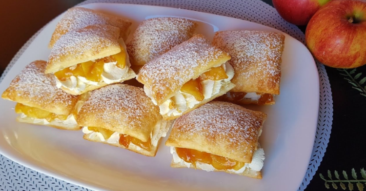 Máte chuť na něco sladkého? Tak vyzkoušejte tenhle křehký jablečný dezert z listového těsta. Jeho příprava je velmi jednoduchá. Kombinace křehkého listového těsta a jablečné náplně vás jistě okouzlí. Tenhle dezert je hotový během chvilky.