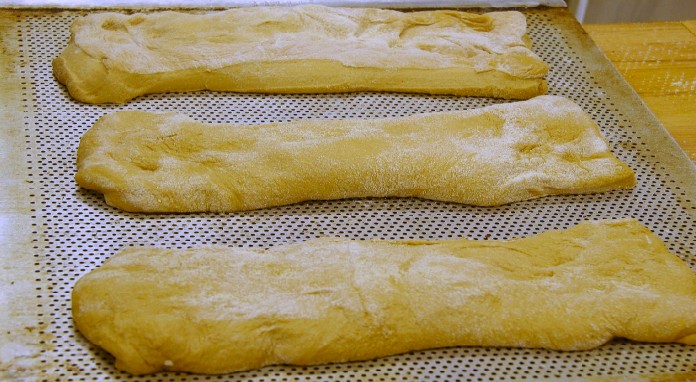 - Smotejte do závinu. Takto uložte do lednice. Po vytažení z lednice rozdělte závin na čtyři menší části. Ty uložte do vymazaného a vysypaného plechu a zatřete je zakysanou smetanou.