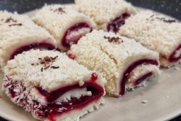 Kokosová roláda s třešněmi a jemnou chutí – připravená bez pečení