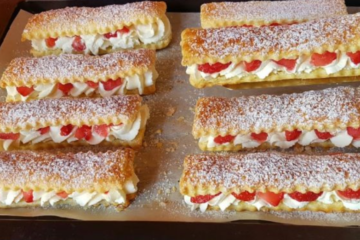 Jahodové řezy z listového těsta s mascarpone krémem – jemná chuť