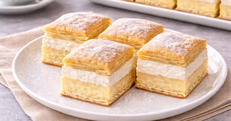 Pudinkový kremeš patří mezi dezerty, které nikdy nezklamou. Křehké listové těsto, jemný vanilkový krém a nadýchaná šlehačková vrstva tvoří dokonalou kombinaci chutí a textur. Pudinkový základ je doplněný o máslo, které mu dodává bohatší chuť a krémovější konzistenci. Druha vrstva z vyšlehané smetany pak dezertu propůjčuje lehkost a jemnou svěžest.