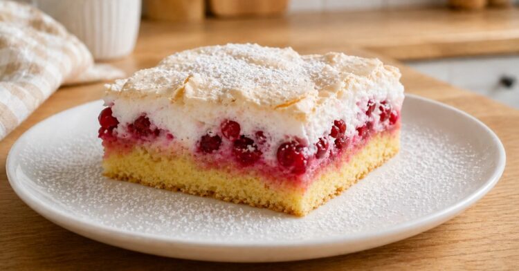 Sdílejte tenhle recept na jemný rybízový koláč se sněhem i s Vašimi přáteli! Určitě si také pochutnají!